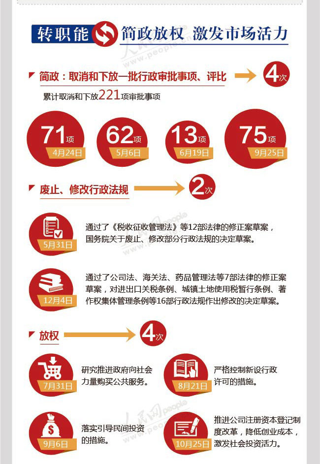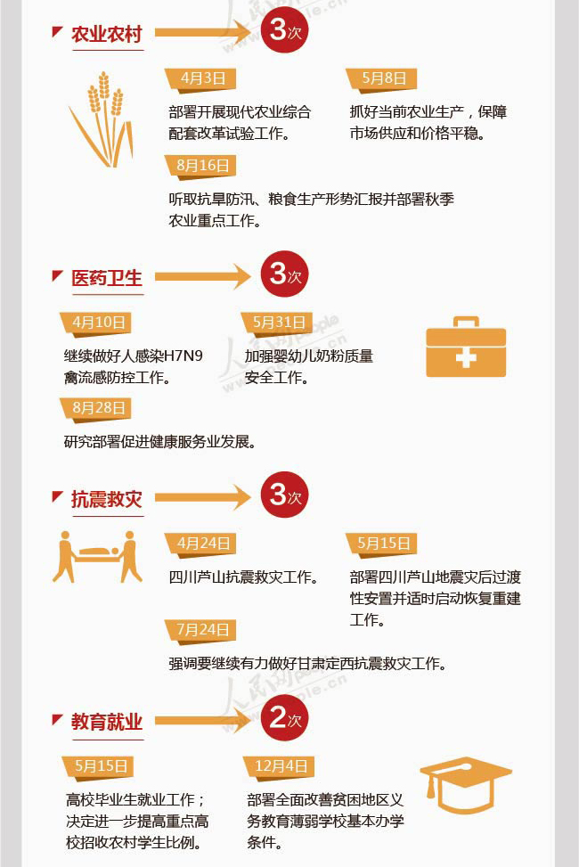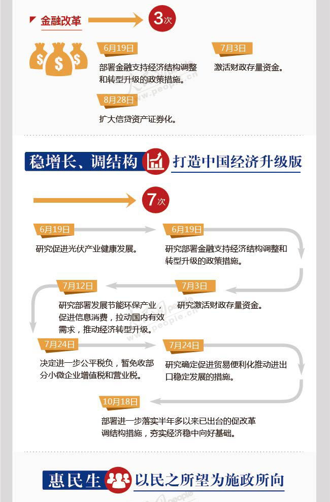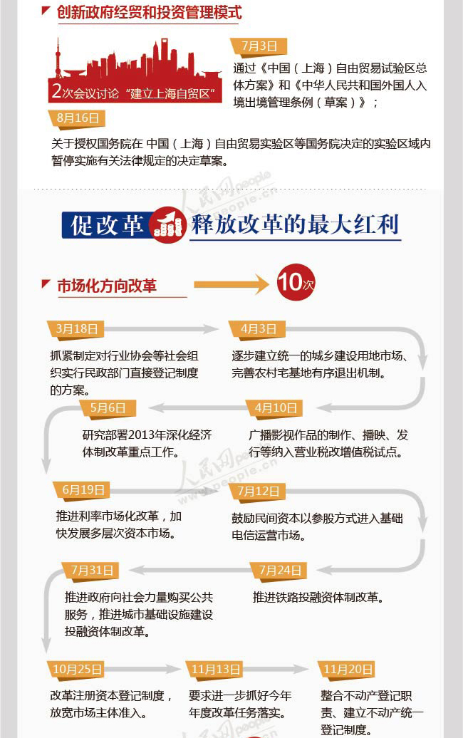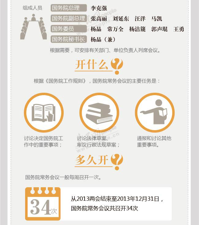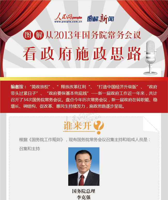 “简政放权”、“释放改革红利”、“打造中国经济升级版”、“政府带头过紧日子”、“政府要保基本兜底线”……新一届政府工作近一年来,共计召 开了34次国务院常务会议。盘点今年历次常务会议,新一届政府在转职能、稳增长、调结构、促改革、惠民生持续发力,施政思路逐步呈现。